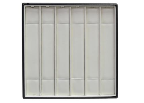 This European quality display is stackable, black covered outside, white inside. This display has a padded base so it won't scratch your glass counters. This display can be made in your choice of colour and materials. This is not made in China.