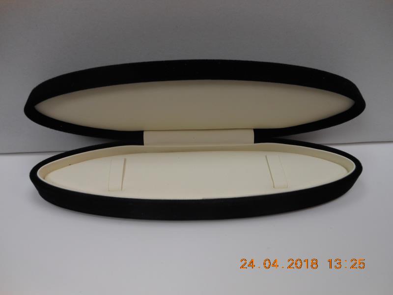 Beautiful velvet with suede bed for the bracelet to sit on. 9 x 2.5 inches