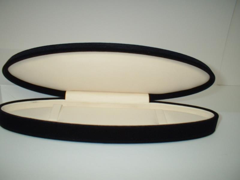 The Prague collection of oval jewellery cases is finished with style and elegance. The standard covering is velvet and suedine with many colours to choose from. Options: internal foil blocked printing and on case tooling