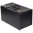 Leather Carrying Case that holds 15 one inch trays. Zippered sides for easy storage and removal. Center sturdy carrying handle. This product is collapsible which is good for storage.