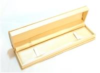 Cream roll top bracelet box. 8 5/8 X 2 1/4 X 1 3/4 INCHES Comes with an outside box complete with ribbon for instant gift wrap.