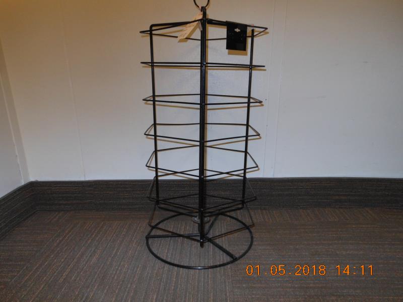 Black metal stand with tiers. Holds plastic earring or pendant cards.