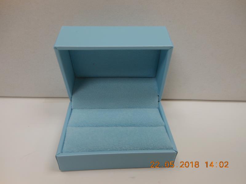Single ring box is a satiny finish in Aqua blue. The interior is suede.