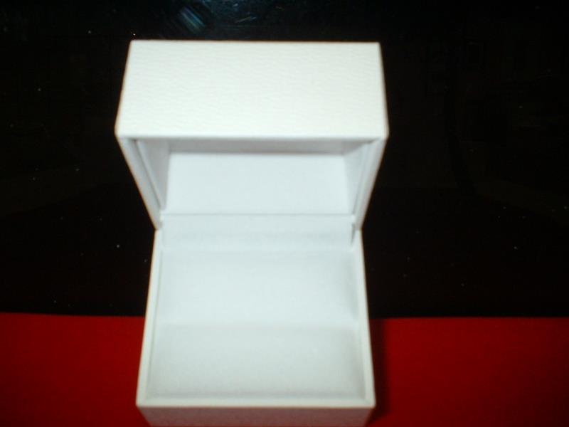 Beautiful and simple white snakeskin textured box. No tooling at all. White velvet inside. Single ring box perfect for wedding bands.