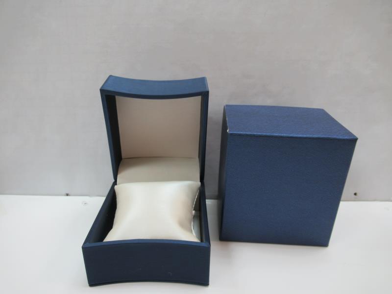 Watch box with pillow. Exterior finish in a blue satiny material.