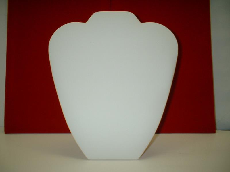 Necklace easel in white leatherette.