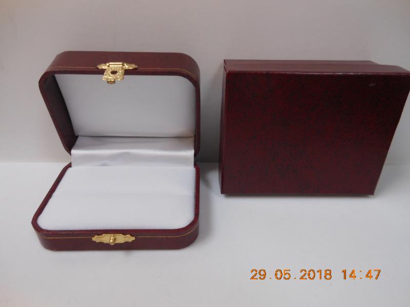 • High-end leatherette material • Accented with clasp lock and gold tooling • White plush interior.